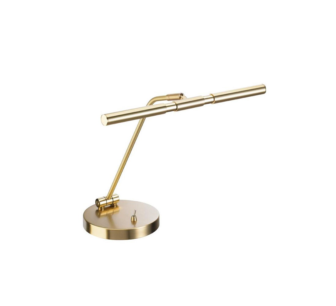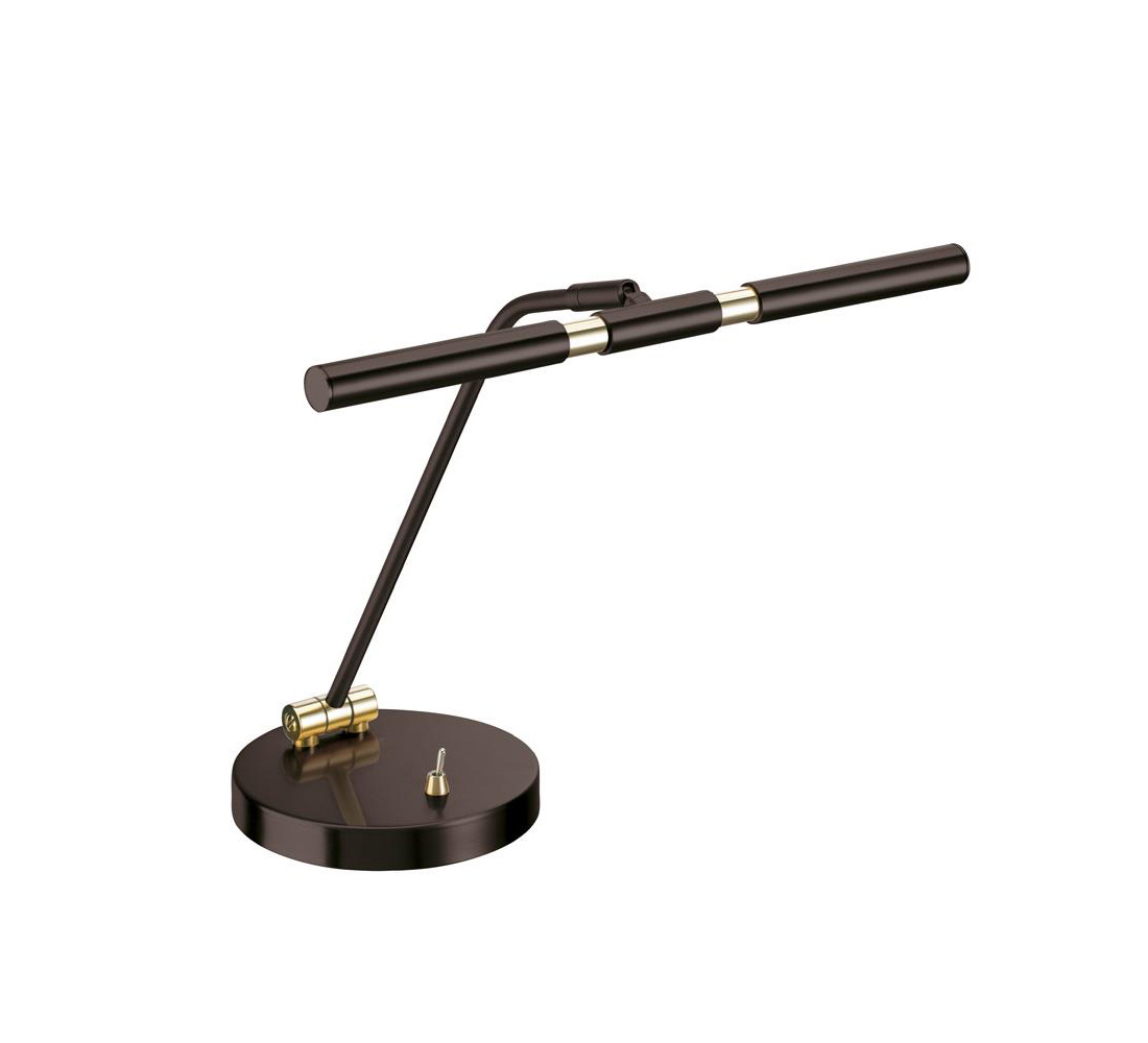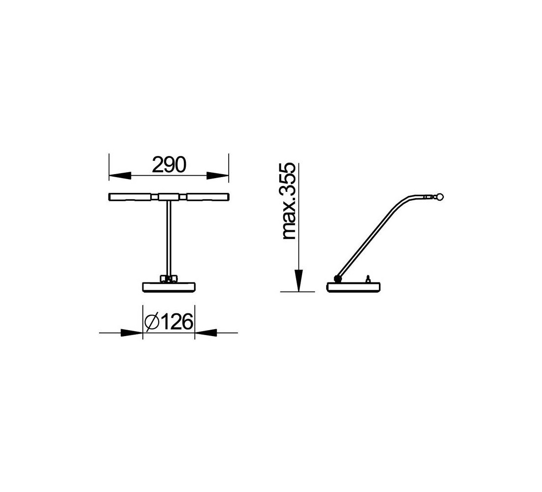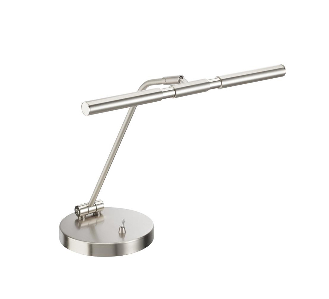 Angenehme Lichtfarbe, zweiflammiger, individuell einstellbarer Reflektor, Arm mit Dreh-, Kippgelenk und im Fuß integrierter Schalter.